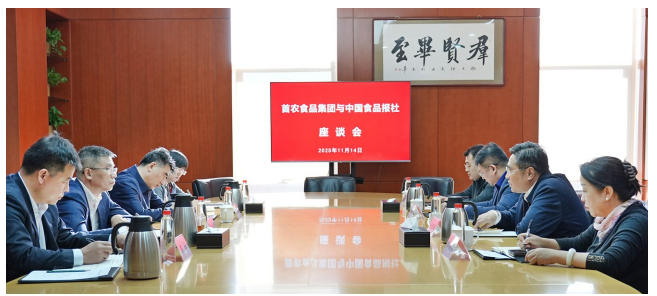 本报讯 (记者 范永伟)纯天然生产的奶是什么味道?天然食品的标准该如何制定……近日,中国食品报社党总支书记、社长黄国胜一行到北京首农食品集团开展座谈交流活动,双方围绕食品安全保障、匠心产品推广、天然食品标准研发等议题展开深入探讨,为食品行业高质量发展注入新动力。