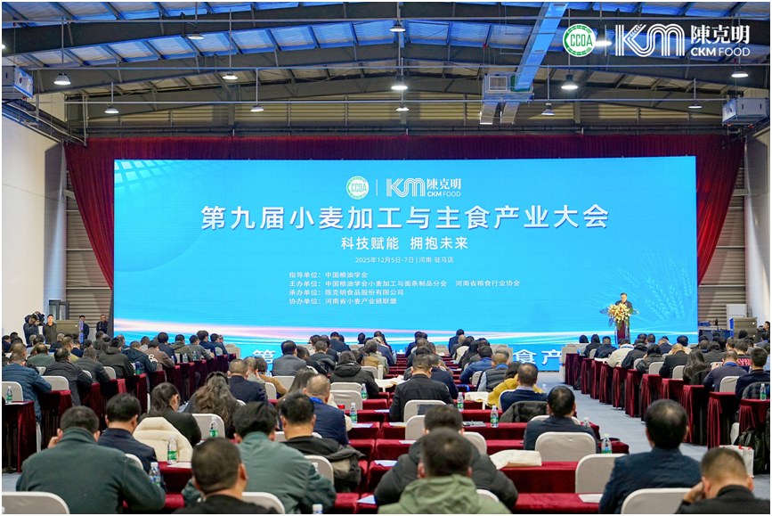 本网讯(通讯员 田猛) 12月7日,第九届小麦加工与主食产业大会在河南省驻马店市圆满落幕。本次大会以“科技赋能 拥抱未来”为主题,由陈克明食品股份有限公司承办,汇聚了来自中国粮油学会、高校、科研机构及行业领军企业的数百位代表。在为期两天的议程中,与会者围绕小麦加工技术、产业政策、市场趋势及智能化升级等核心议题展开了深度对话。作为大会承办方,陈克明食品股份有限公司不仅展现了其“中华制面工艺传承者”的定位底蕴,更通过一系列创新产品与沉浸式互动体验,生动诠释了“新消费”理念——即通过供给创新满足消费升级需求,打破大众对传统面食产业的刻板印象。