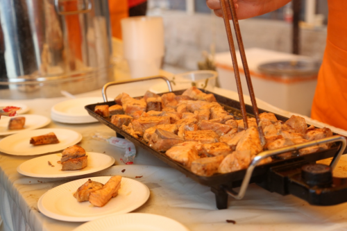 2019龙羊峡三文鱼中国峡湾挑战赛将三文鱼作为赛道补给,为参赛选手提供三文鱼肉松、三文鱼刺身、煎鱼排、三文鱼寿司等新鲜美味和快捷方便的美食,帮助参赛选手补充身体所需营养和电解质。选手在进行补给时对三文鱼食品赞不绝口,纷纷表示新鲜、美味,不虚此行!