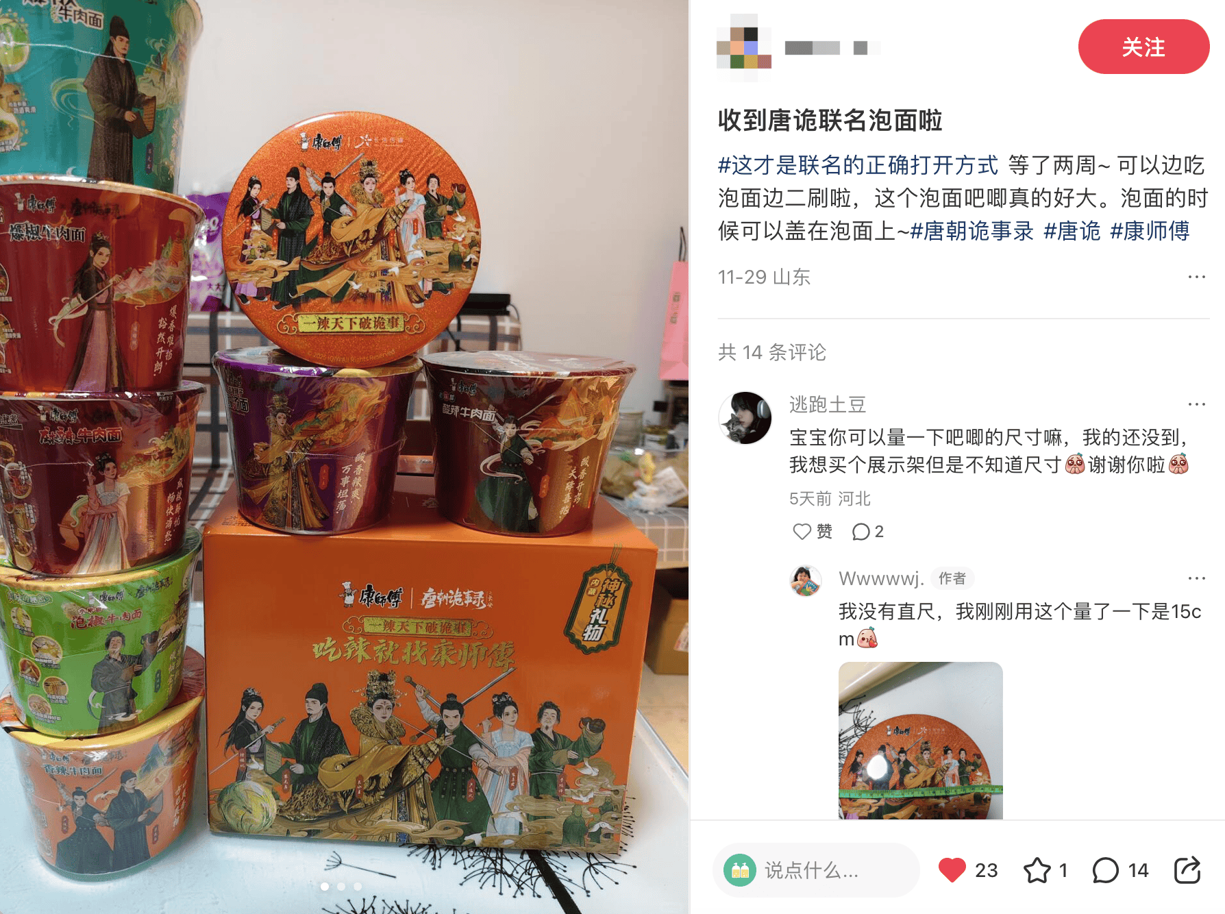 (图为康师傅唐诡\非人哉联名,图片来源:小红书)
